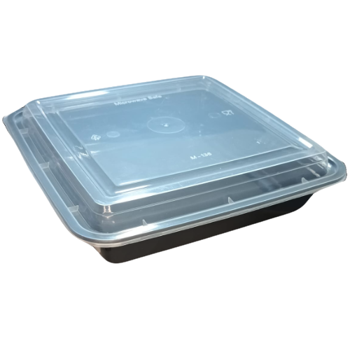 ENVASE REUTILIZABLE PLASTICO PP/POLIPROPILENO BASE NEGRA +TAPA TRANSPARENTE CUADRADO 1500cc 48onzas 216x216x58mm