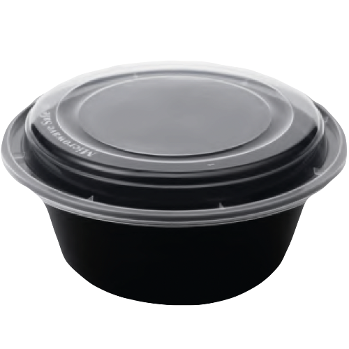 ENVASE REUTILIZABLE PLASTICO PP/POLIPROPILENO BASE NEGRA +TAPA TRANSPARENTE REDONDO 1200cc 40onzas 184x83mm